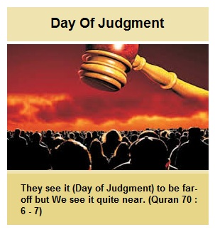 They see it (Day of Judgment) to be far-off but We see it quite near. (Quran 70 : 6 - 7)