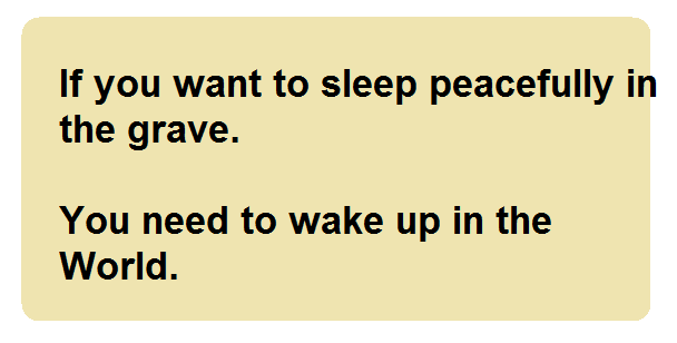 without any warning. Your big bunglow, your big bank balance, your branded cars, your wealth, your academic qualifications (degrees), your status, and your beauty are all just temporary, and they cannot save us in the grave or in the hereafter. Nothing can save us except our own good deeds. In shaa Allah.