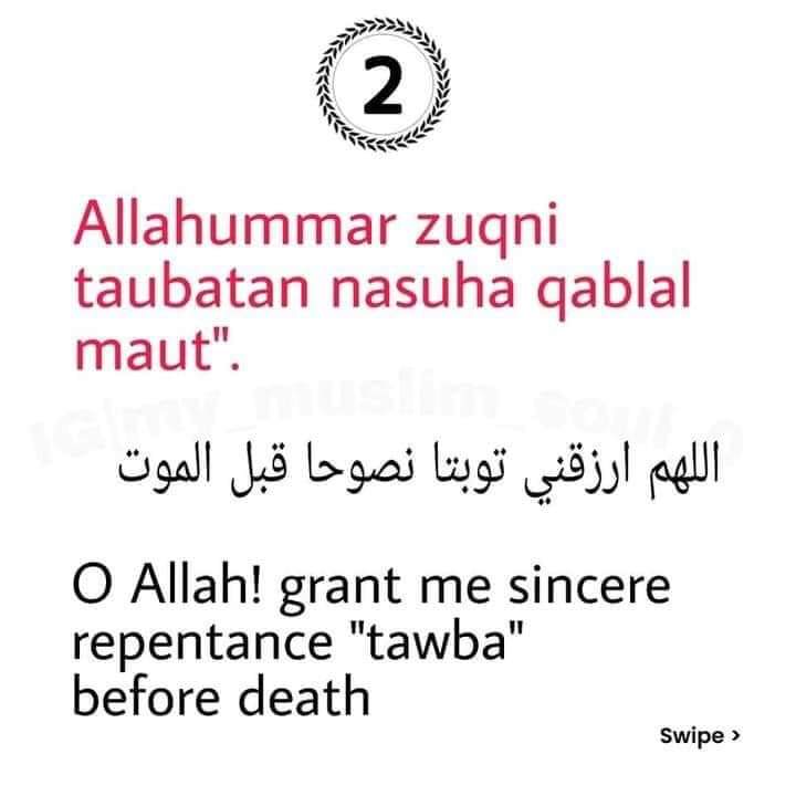 now.' May Allah grant me true repentance before my death, and O Allah, please accept my