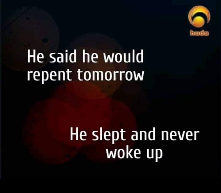 don't delay in repentance. Live each day as your last day because death will come unannounced.