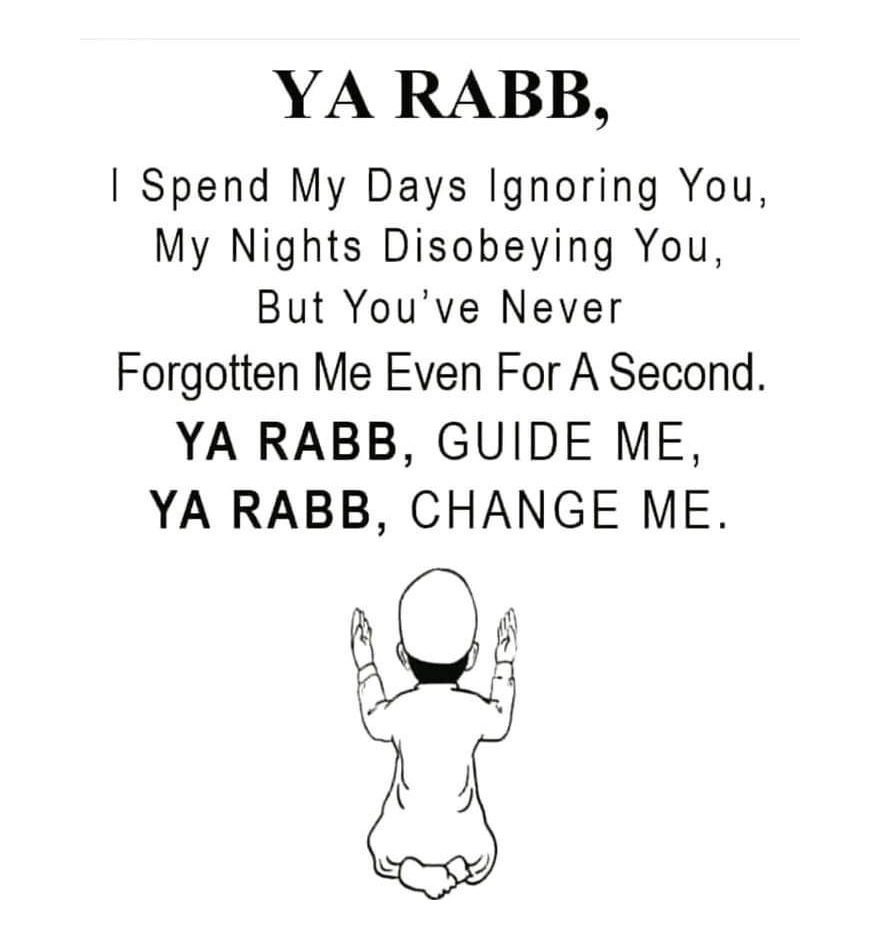 Ya Allah, I spend my days iqnoring you, my nights disobeying you, but you've never forgotten me even for a second. Ya Allah, please forgive me, guide me and change me.