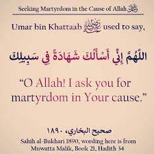 The Prophet (ﷺ) said: "He who asks Allah for martyrdom, Allah will raise him to the high status of the martyrs, even if he dies on his bed".