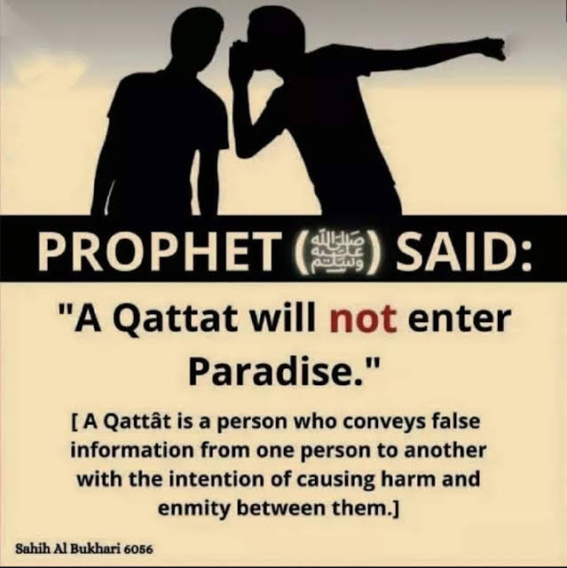 Qattat meaning in Islam, Qattat is a person who conveys disagreeable, false information from one person to another with the intention of causing harm and enmity between them.
